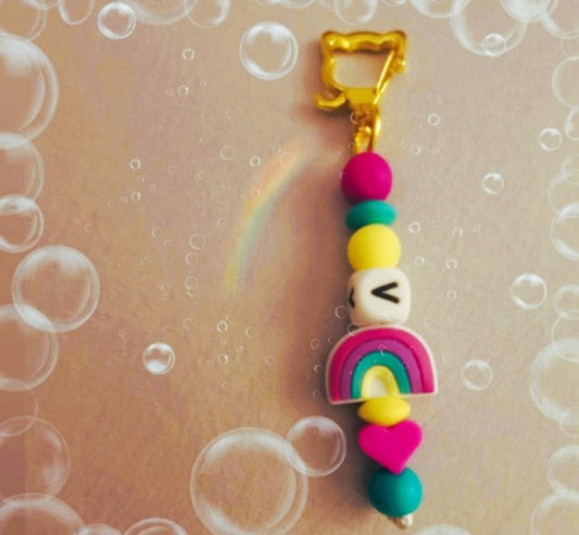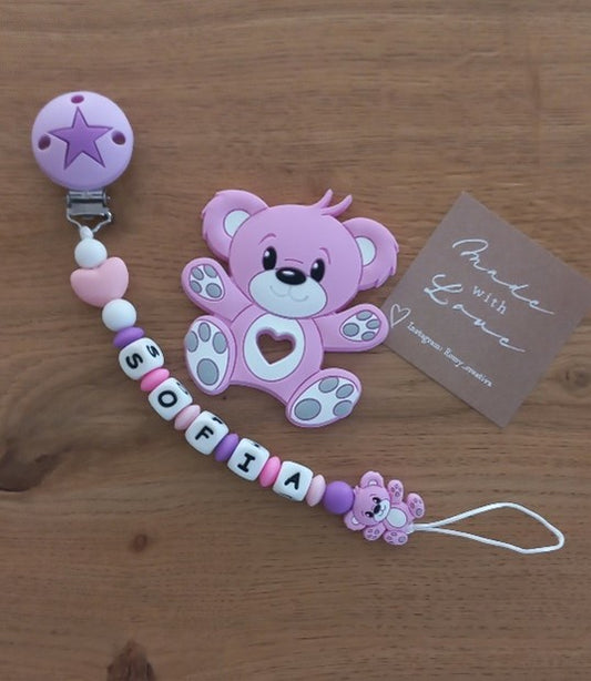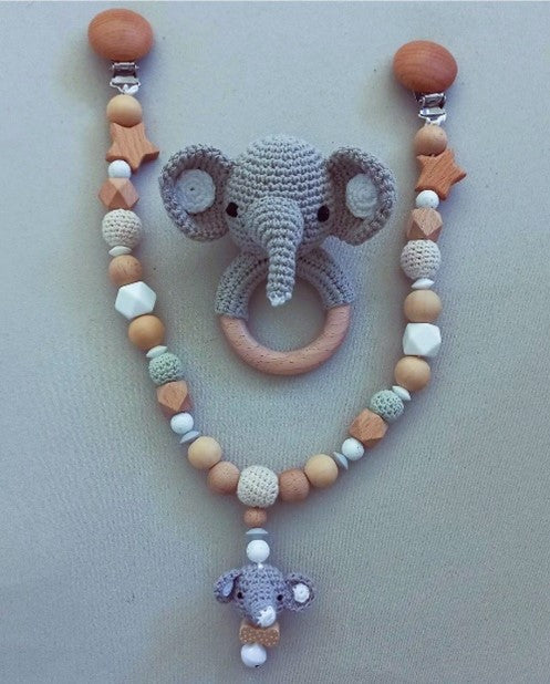 Accessori con clip per fissare il ciuccio o una figura al vestitino o al bavaglino del bebè. Utilizzabili anche come gioco sensoriale e massaggia gengive. Completamente personalizzabili, sono un'idea regalo ideale. Lavare con panno morbido e acqua tiepida. Lunghezza massima consigliata: 22 cm.